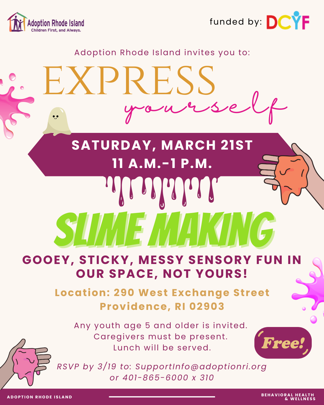 Contact supportinfo@adoptionri.org or 401-865-6000 x310 to reserve your spot or with any questions.